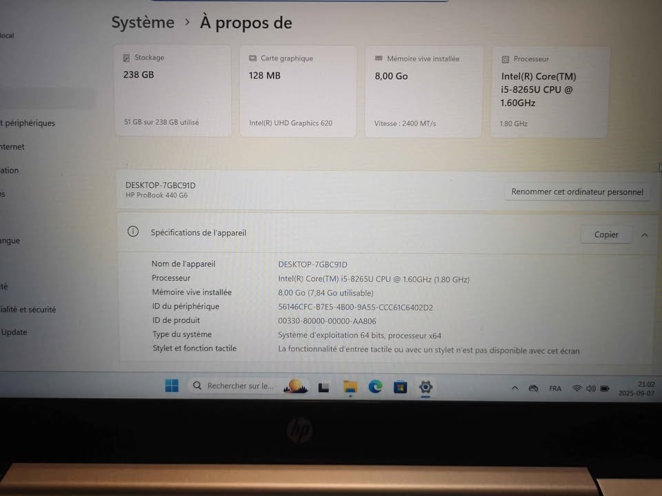 Carte graphique : Intel UHD Graphics 620 intégrée